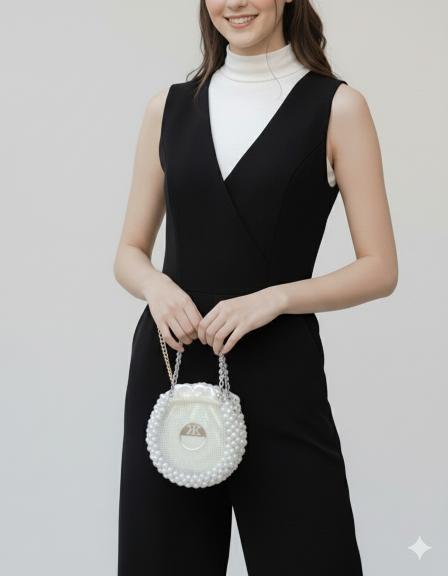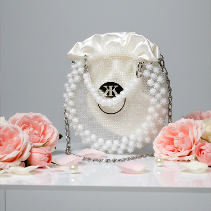 The Nazuk Moti Handbag is the epitome of refined elegance. This miniature, circular clutch is handcrafted with meticulous care, featuring a stunning pearl-finish beaded trim that gives it a truly royal look. The transparent, iridescent body shimmers subtly, creating a dreamlike effect that catches the light beautifully.